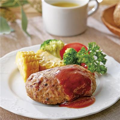まろやかでコクのある中辛のレトルト「ビーフカレー」と、フライパンで温めるだけで簡単に出来上がる「焼きハンバーグ」をセットにしました。