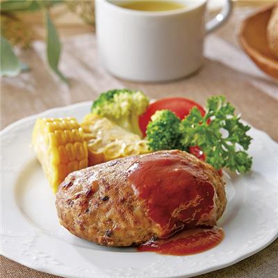 まろやかでコクのある中辛のレトルト「ビーフカレー」と、フライパンで温めるだけで簡単に出来上がる「焼きハンバーグ」をセットにしました。