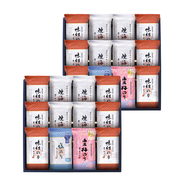 味付けのり(8切6枚)×12・有明海産塩のり(8切6枚)×2・南高梅のり(8切6枚)×2・焼のり(8切6枚)×8 【卵・小麦・えび】