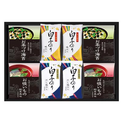 白子のり味付のり(8切5枚)・白子だし塩のり(8切5枚)各4、永谷園お茶づけ海苔(5袋入)・永谷園お吸いもの松茸風味(6袋入)各2