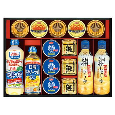 ヤマサ絹しょうゆ450mL×2・鮭ほぐし50g×3・日清キャノーラ油400g・日清ヘルシーオフ600g・宝幸貝柱水煮ほぐし身65g×3・ニッスイさば水煮150g×3・ニッスイ紅ずわいがにほぐし身55g×2 【小麦・かに】
