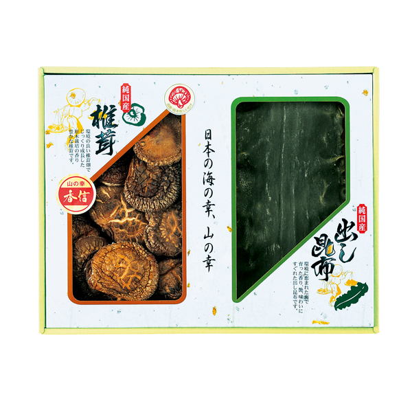 信頼の国内産、椎茸と昆布の詰合せ。