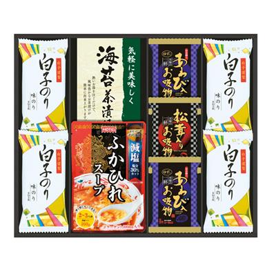 ふかひれスープ160g・あわび入お吸い物×2・松茸入りお吸い物・丸美屋のり茶漬け(6g×2袋)・白子のり(8切5枚)×4 【卵・乳成分・小麦・えび】