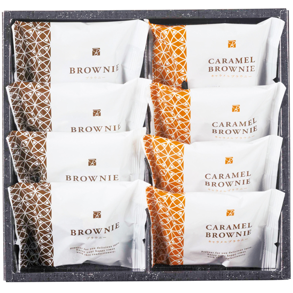 濃厚なショコラブラウニーにアーモンドフレークをトッピングしたショコラブラウニーとキャラメル風味のブラウニーの詰合せです。
