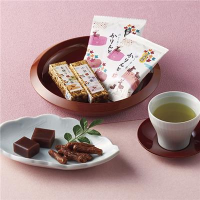 かりんとう(黒蜜10g・白蜜10g各3)、羊羹(小倉・本練り各1)