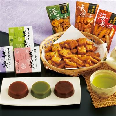 緑茶・あられ・羊かん詰合せ【rm26c038gc061】