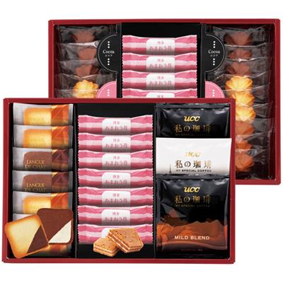 ■商品: | はかたあまおう苺チョコサンド×14・絞りクッキー(ココア・プレーン・コーヒー)各6・ラングドシャ(プレーン×4枚・チョコ×2枚)・UCCドリップコーヒー(マイルドブレンド×2・リッチブレンド) 【卵・乳成分・小麦】 |