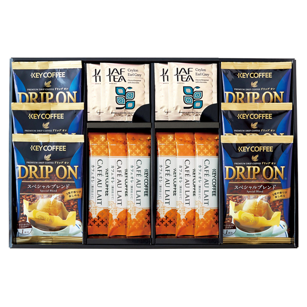 ドリップオンスペシャルブレンド8g×6、カフェオレ7g×6、セイロンアールグレイティーバッグ2g×4