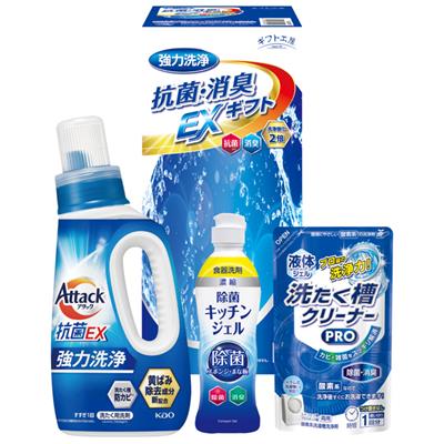 アタック抗菌EX750g・除菌キッチンジェル200mL・液体洗たく槽クリーナーPRO200g