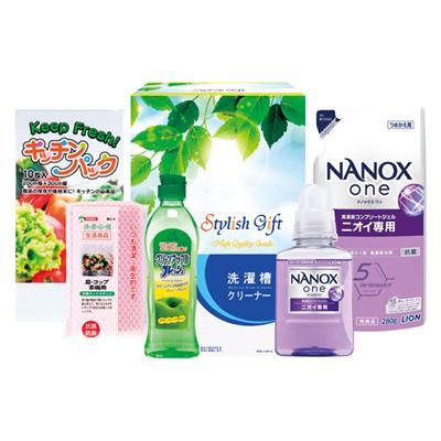 NANOXone ニオイ専用380g・NANOXone ニオイ専用 つめかえ用280g・グリーンアップルフレッシュ250mL・洗濯槽クリーナー(4.5g×3錠入)・キッチンパック(10枚入)・ネットスポンジ各1・ネットスポンジ/中国製、その他/日本製