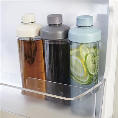 こまめな水分補給で体を整えよう!飲み忘れを防止する時間メモリ付きのクリアボトル。外出先での直飲みはもちろん、冷蔵庫のポケットに入れてお家でピッチャーとしても使える2Wayタイプ。本体の口が広く、フレーバーウォーターも作りやすい。手を入れて奥まで洗いやすく、清潔を保てます。シンプルなデザインなので食卓に並べてもすっと馴染みます。