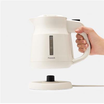 温かみのあるフォルムと使いやすいシンプル機能。持ち運びに便利な本体コードレス。もしも倒してしまっても湯もれを最小限におさえる安心設計。