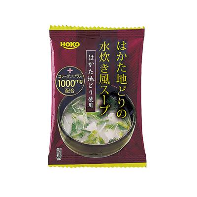 「福岡の筑前煮や水炊きをもっと美味しくしよう」という発想から誕生した、福岡県産はかた地どりを使用。福岡の郷土料理 水炊き風に仕上げました。コラーゲン1000mg、女性に嬉しいスープです。